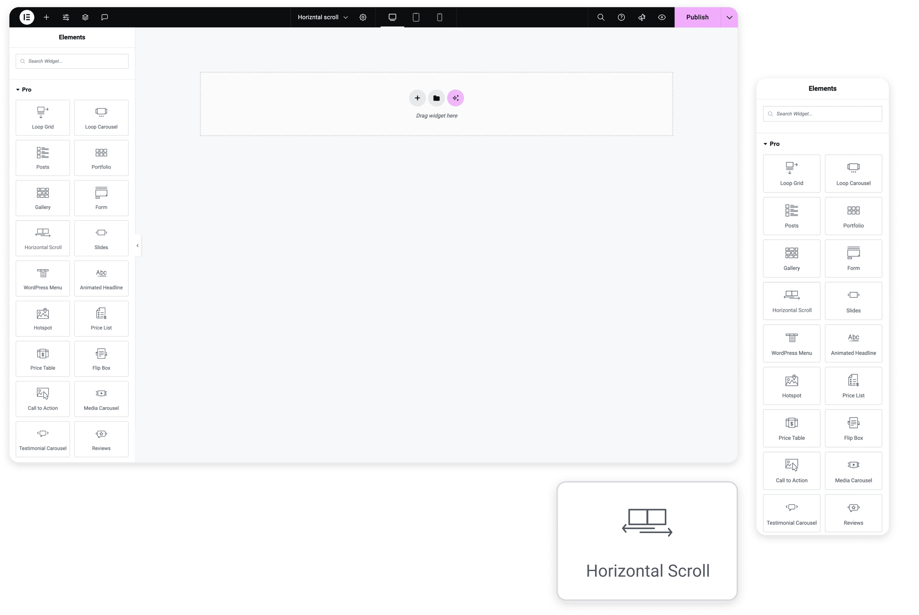 Horizontal scroll drag and drop widget that seamlessly blend into Elemetor’s widgets